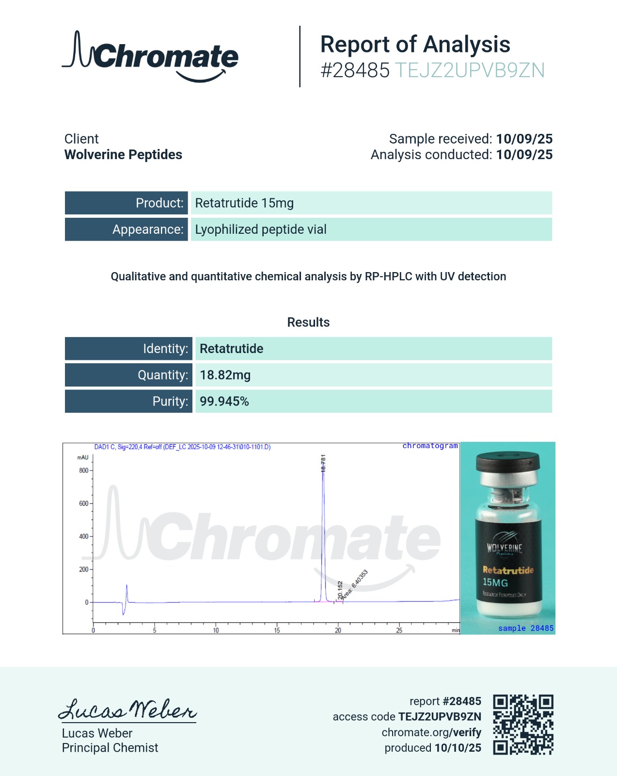- Handle the vial carefully to avoid damage.