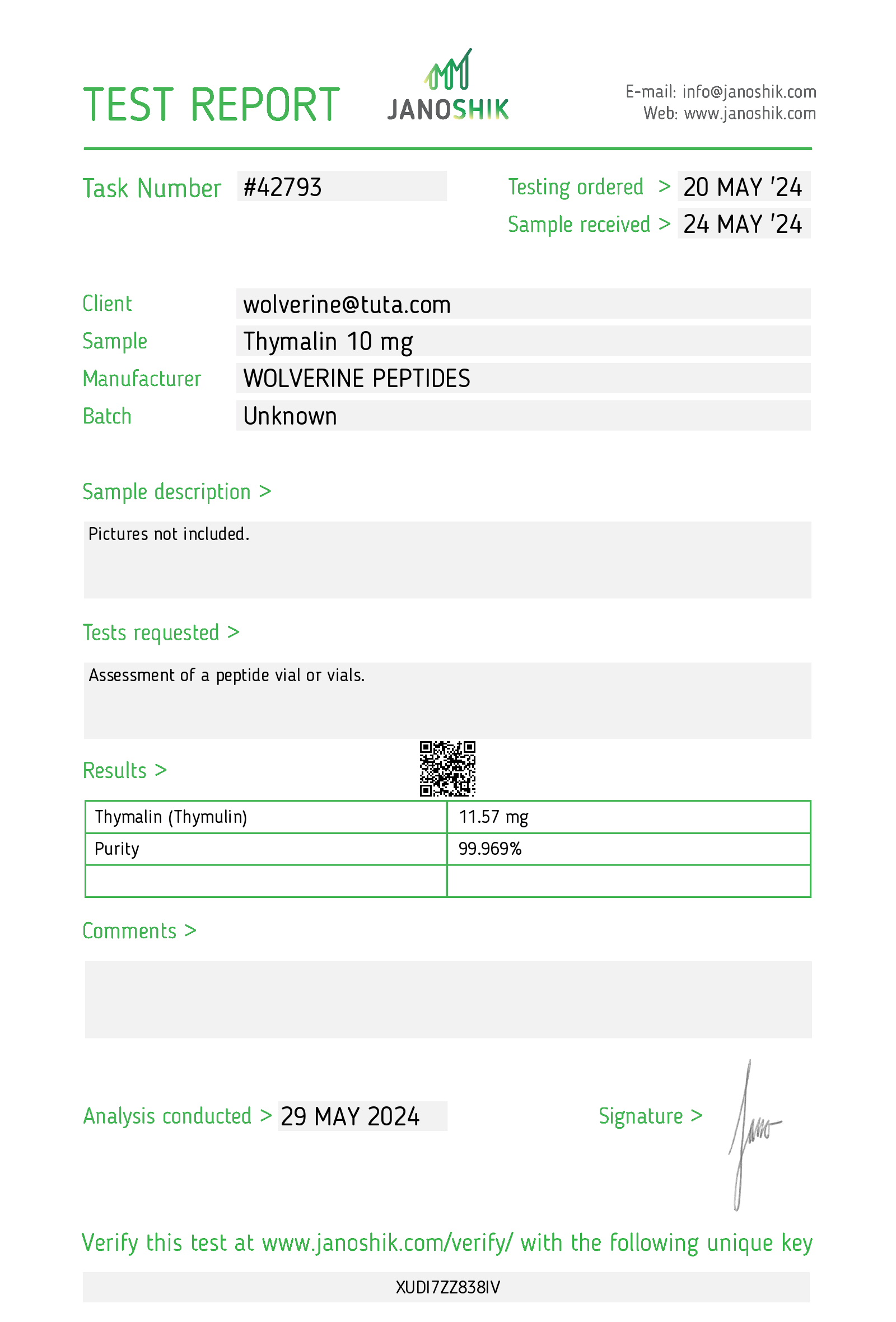 Thymalin is a synthetic peptide that has been extensively studied in laboratory settings. Each vial of Thymalin has 10mg of lyophilized (freeze-dried) powder that requires reconstitution prior to use.